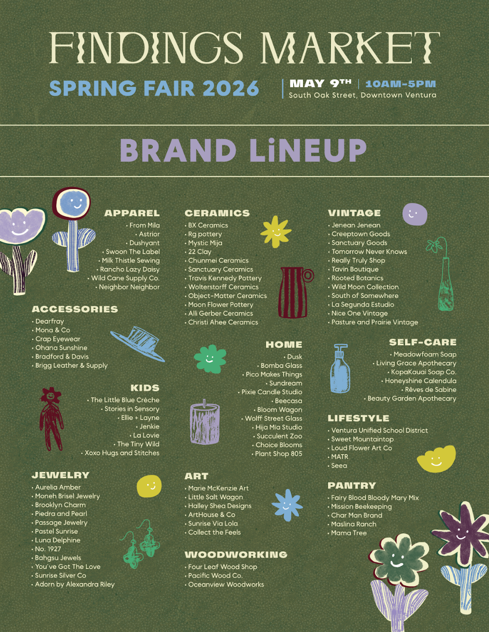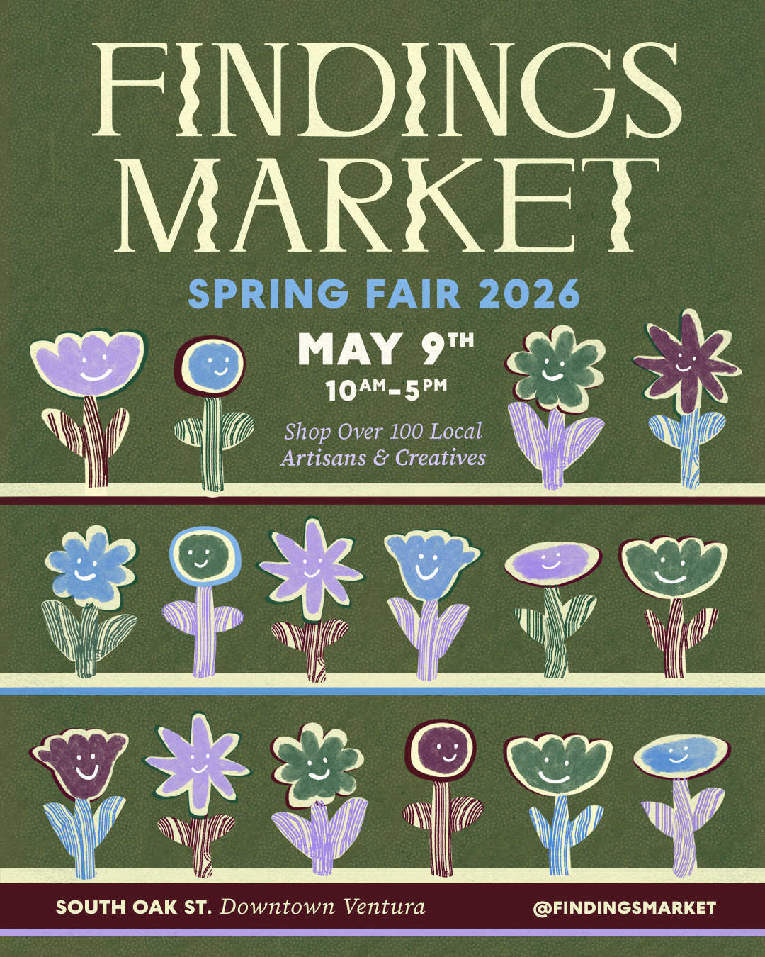 Findings Market in Ventura! Saturday, May 9, 2026 10:00 AM 5:00 PM 10:00 17:00 South Oak St. Ventura, CA (map) Google Calendar ICS